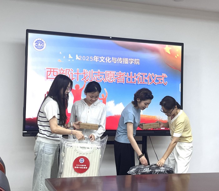 学院还为志愿者精心准备了“出征大礼包”,内含行李箱、台灯等生活物资。郑静和方婷婷为志愿者逐一发放礼包,并合影留念。后期,文传学院将持续跟进西部计划培训等相关事宜,和志愿者保持良好的沟通,确保服务期间全程跟踪指导。