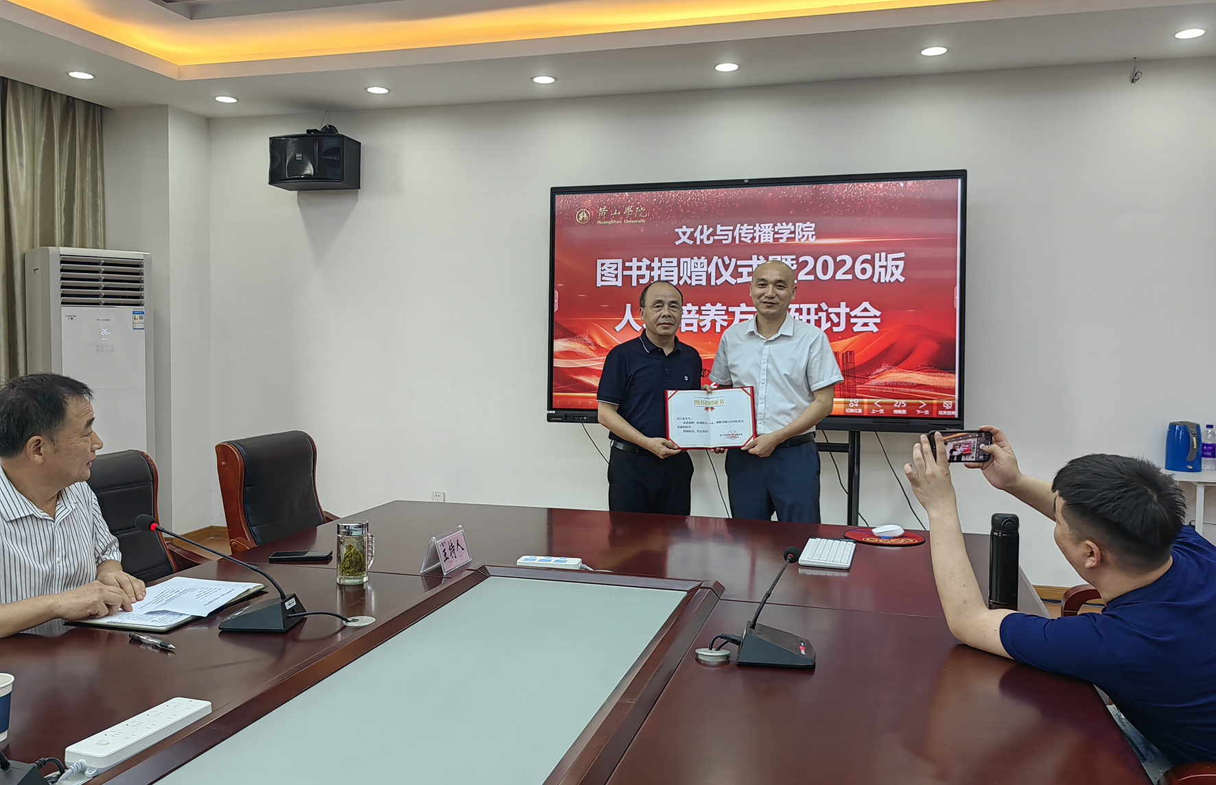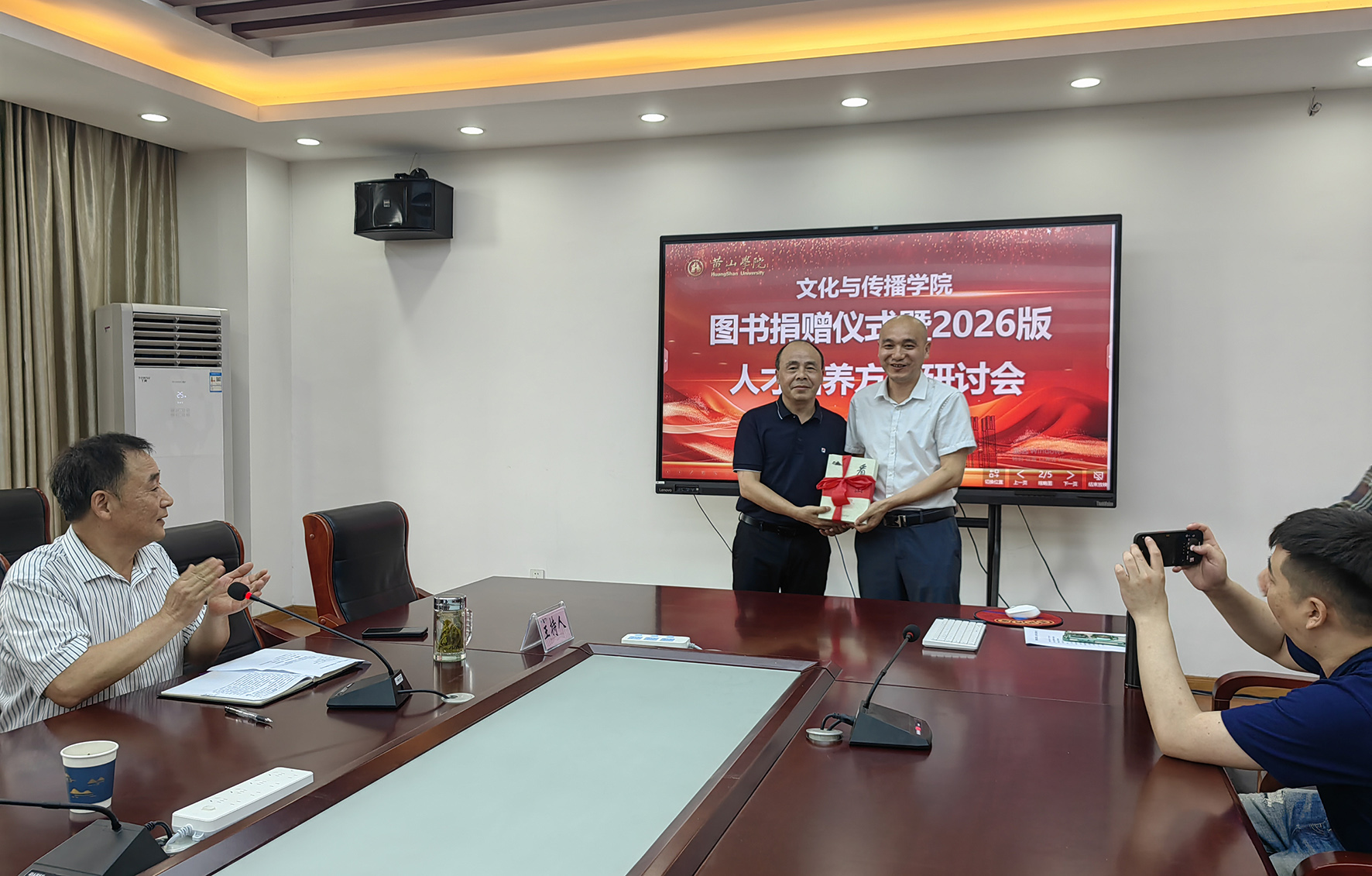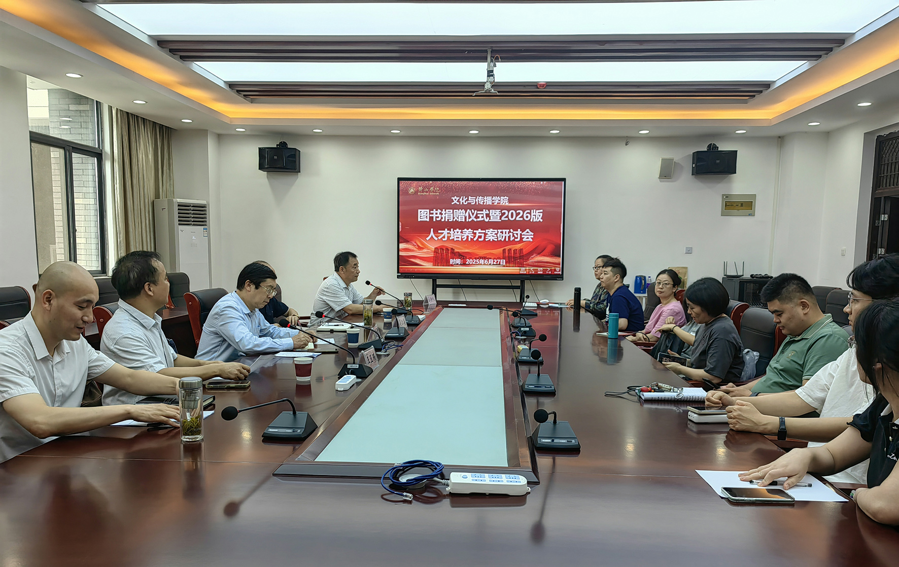6月27日,太阳成集团tyc9728在文澜楼320会议室举办2026版人才培养方案研讨会暨新闻作品图书捐赠仪式。安徽日报驻黄山记者站原站长、高级记者吴江海,黄山日报社党委书记、总编辑吴顺辉,暨南大学新闻与传播学院教授、博士生导师王玉玮,太阳成集团tyc9728部分教师等出席研讨会。活动由太阳成集团tyc9728党委书记路善全主持。