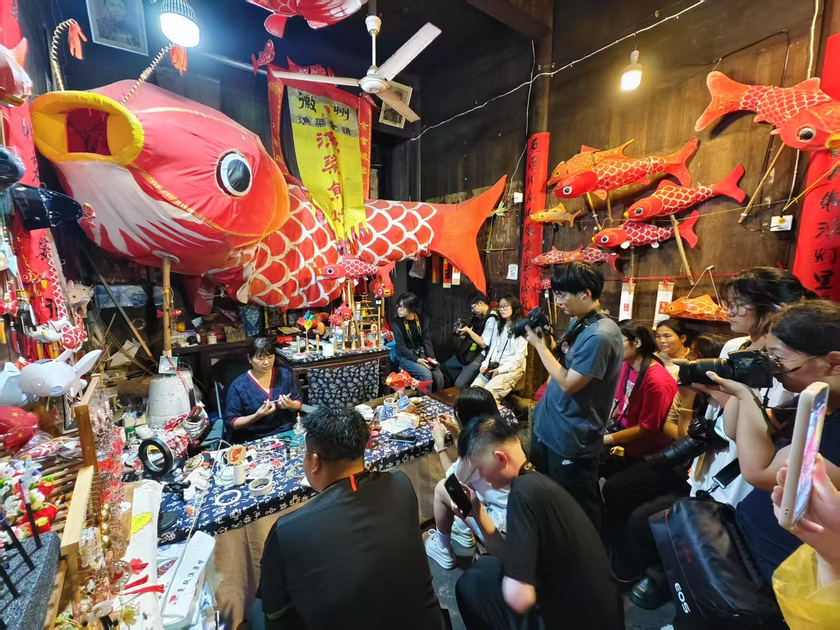 当天上午,同学们于率水校区东大门集合出发,抵达屯溪区观光索桥新安江下游延伸段岸边。在老师指导下,同学们不断变换拍摄角度,运用不同的构图技巧,将雨中新安江的灵秀与徽派建筑的古朴融合于镜头之中,勾勒出一幅幅灵动的画卷。随后,同学们赴歙县渔梁古镇,用镜头记录下渔梁老街雨中古朴风貌,还有幸采访到了非遗鱼灯民间手艺人,详细了解到了鱼灯背后承载的民俗文化。