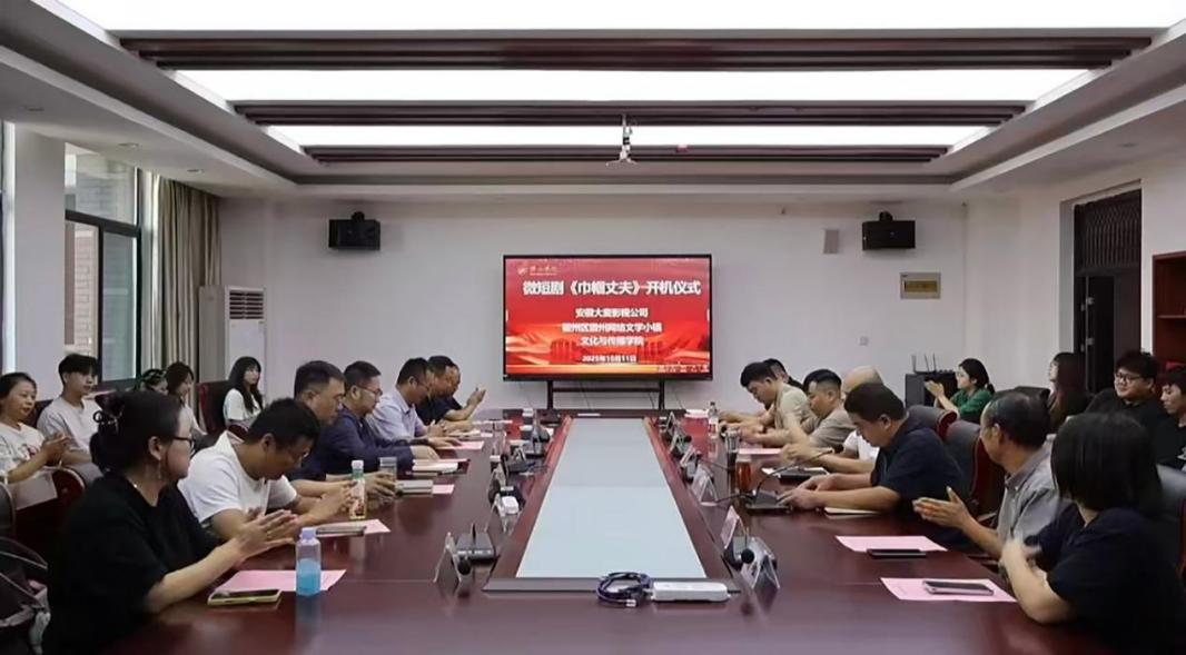 10月11日上午,太阳成集团tyc9728在文澜楼320会议室举行微短剧《巾帼丈夫》开机仪式。该剧由安徽大麦影视公司投资,学院师生共同参与创作,以明代徽州女性胡重为主角,讲述她设计并主持建造宏村水系的历史故事,展现徽州文化的深厚底蕴与女性智慧。