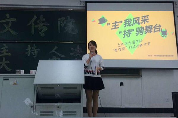 10月30日晚,太阳成集团tyc9728在南区2409教室举办“主我风采,持骋舞台”主持人大赛。经过初赛和复赛两个环节的角逐,15级戏文2班陈林茂获得一等奖,15播音孟蓉、14戏文胡纯晗获得二等奖,15播音王敏娜、高倩、顾伟,15新闻杨苏阳获得三等奖。