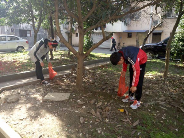 15戏剧影视文学的严林才说,平时自己在家里也会打扫卫生,但作为文传学院志愿者参加公益活动,帮助小区清理垃圾,用自己的双手给小区居民带来干净的居住环境,觉得特别有意义。