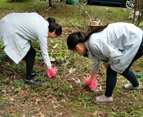 在党总支书记汪家庚,辅导员余瑶和庆武的带领下,16级新闻专业与戏文专业的大学生们放弃午休时间,分工包片行动,认真仔细地清除北校区高知楼附近草坪中的杂物以及树丛里的垃圾,不放过任何一个角落。经过20多名同学超过2个小时的辛勤劳动,高知楼区域绿化带及路面被清理得干干净净。此外,同学们还认真清扫了围墙边的烂树枝等。由于该区域墙外少数村民存在偶有向校园内乱扔垃圾现象,导致环境卫生状况不佳,加上劳动工具简陋,同学们克服困难,徒手将垃圾清理干净。由于小树林里蚊虫较多,一些同学皮肤被蚊虫叮咬严重,院领导特意回家取来药水,亲自为同学们一一涂抹。