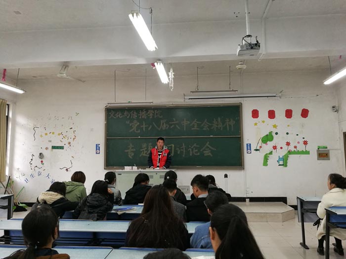 各班团支部书记结合班级活动开展情况进行交流发言,并踊跃递交心得体会。14广编班徐庆文说,学习党的十八届六中全会精神不仅能促使大学生共青团员更加靠拢党,更重要的是消除了部分大学生无理想的空虚状态,根据时政热点,开展具有学院特色和班级特点的团日活动能很好的提高班级的凝聚力,并用习近平总书记“踏踏实实做事,踏踏实实做人”的要求与在座同学共勉。