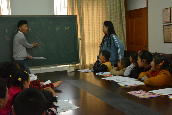 看到支教“老师”的到来,孩子们从窗户中探出一个个小脑袋,显得异常兴奋。志愿者此行给小朋友们准备了丰富的礼物,通过自我介绍游戏的环节分发给大家,让志愿者和孩子们互相熟络。播音主持艺术专业的同学开设了普通话小课堂,课前精心准备,课上生动讲述,纠正孩子们的普通话发音。课后志愿者们和孩子们聊天、游戏,用手中的摄像机记录孩子们的笑脸,并将影像资料通过学校传递到孩子们在外务工的父母手中。行知志愿者本着“奉献、友爱、互助、进步”的服务精神,通过普通话课堂、兴趣拓展、亲情陪伴、心理疏导等活动,给予农村留守儿童多方面的关爱帮助。