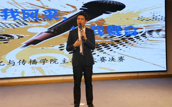 为营造积极向上的校园文化氛围,培养当代大学生的口头表达能力,发掘具有主持特长的在校学生,11月14日晚,文传学院“主我风采,持我舞台”主持人大赛总决赛在南区小剧场举行。经过激烈角逐,专业组比赛17播音二班谭祖飞获得一等奖,16播音一班班张成杰、17播音一班韩幸运获二等奖,17播音一班徐超男、17播音一班张柯樱、16播音二班谢晨宇分获三等奖;非专业组比拼17广编二班赵紫薇获得一等奖,17广编一班刘宇清获二等奖,16新闻杨洁琳获得三等奖。