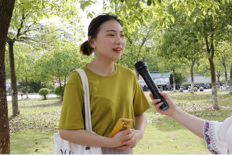 15播音班的凌朝慧同学说,今天是5月4号青年节,我仔细学习了习近平总书记的重要讲话,“勤学、修德、明辨、笃实”是习近平总书记对我们广大青年的殷切希望,只有每一个青年人有信念、有梦想、有奋斗、有奉献,实现中华民族伟大复兴才有力量。作为文传学院学生会的副主席,我更应积极践行社会社会主义核心价值观。