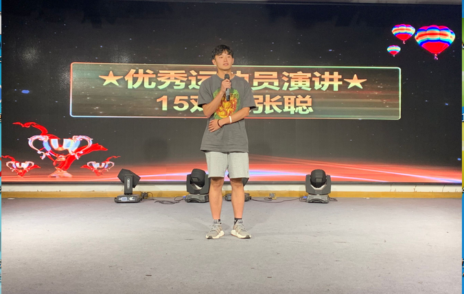 团总支负责人许健美作学生体育活动情况汇报;足球队2015级戏张聪、排球队2018级王荣梅分别代表新老运动员发言。
