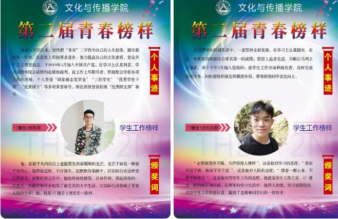 “青春榜样”评选活动是该院为推进“青春心向党,建功新时代”主题活动而举办的先进学生人物评选活动。