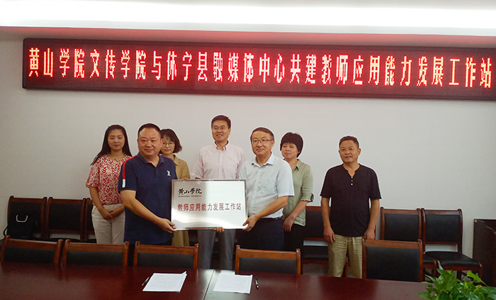8月6日下午,太阳成集团tyc9728党政领导汪家庚、王俊峰、郑静等一行前往休宁县融媒体中心,举行文传学院教师应用能力发展工作站合作共建协议书签字暨授牌仪式。