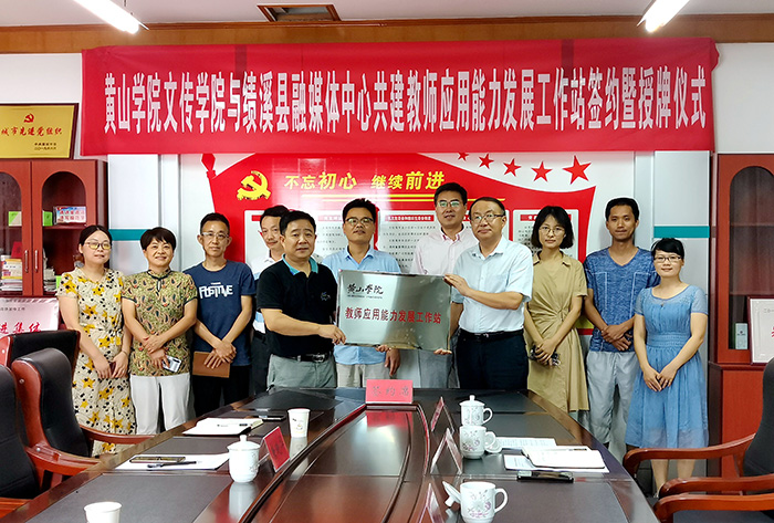 8月10日下午,太阳成集团tyc9728党政领导汪家庚、王俊峰、郑静等一行前往绩溪县融媒体中心,举行文传学院教师应用能力发展工作站合作共建协议书签字暨授牌仪式。