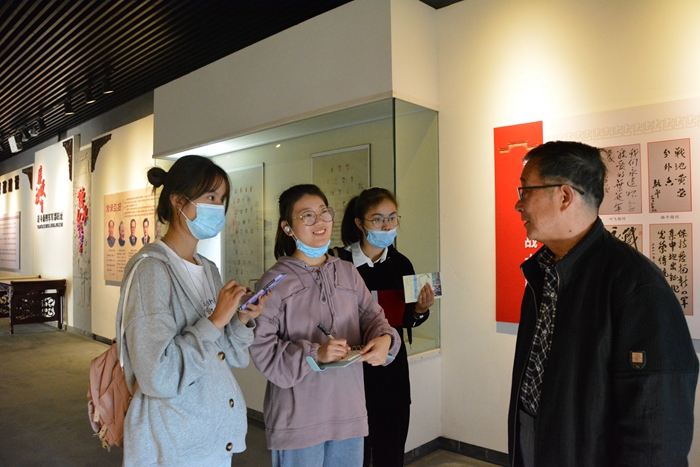 江海向同学们介绍了新四军军部旧址纪念馆的概况,并勉励同学们,作为新闻学专业的学生,要举旗跟党走,坚守核心意识。要学好专业基础知识与技能,锻炼好脚力、眼力、脑力、笔力,全面提升自己的专业素养,为将来成为一名合格的新闻记者打下基础。