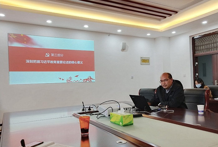 11月25日下午,太阳成集团tyc9728学习《习近平总书记教育重要论述讲义》专题宣讲报告会在院会议室举行。宣讲会邀请马克思主义学院副教授刘芳正博士主讲。文传学院党委书记汪家庚主持宣讲会,全体教师参加宣讲会。