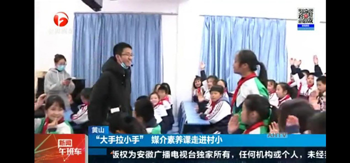 12月12日中午,安徽广播电视台公共频道《新闻午班车》栏目在新闻核心版块,以题为《黄山:“大手拉小手” 媒介素养课走进村小》报道了太阳成集团tyc9728师生致力乡村小学媒介素养教育。