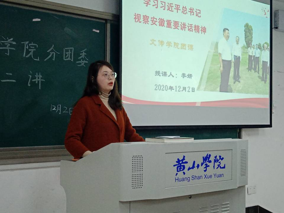 12月2日,学生第二党支部书记李妍以“习近平视察安徽”为主题展开第二讲,引导学员进一步领会不畏艰险、自强不息的精神。