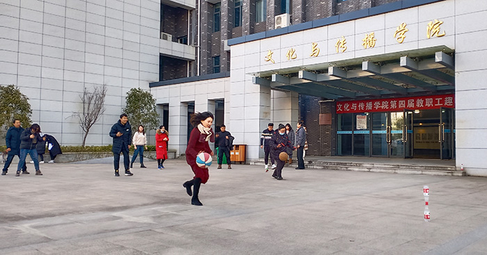 教工趣味运动会于当天下午13:00-14:30和15:00-16:00两个时段进行。首先进行个人项目比赛,主要有通俗桥牌、乒乓球双打、飞镖、跳绳、踢毽子等体育项目。随后进行的团体项目包括1分钟踢毽子、1分钟运球绕杆接力比赛。院党政领导和各教研室共30名教职员工参加比赛。大家积极参与,场内加油声、欢笑声、喝彩声不时响起,赛场气氛热烈,大家享受运动的快乐。(撰稿:汪海波;摄影:周腾飞、孙盛强;审稿:汪家庚)