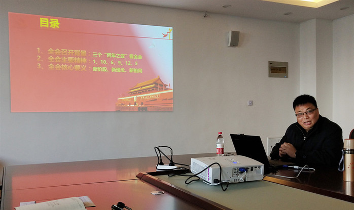朱哲恒的宣讲报告以《开启新阶段,成就新时代》为题,从全会召开的背景、主要精神和核心要义三个方面对会议进行了解读,强调在世界百年未有之大变局和人类百年未有之大疫情背景下,十九届五中全会的召开和取得的成果事关中国未来发展的目标和战略,充分体现出中国共产党的远见卓识,对全面建设社会主义现代化国家开好局、起好步,具有十分重要的意义。学习领悟会议精神的重点是科学把握新发展阶段的时代内涵,深入理解并积极贯彻新发展理念,增进对加快构建新发展格局的认识。
