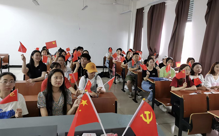 收看直播的师生党员挥舞着手中的党旗、国旗,以昂扬的姿态饱含深情地齐声歌唱《没有共产党就没有新中国》。(撰稿:冯韵、李妍;审稿:汪家庚)