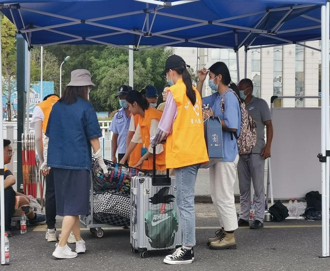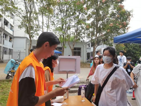 在21栋、27栋新生宿舍楼下,学院设立了咨询服务台,学生会成员各司其职,帮助新生办理手续、搬运行李,保障新生顺利入住。