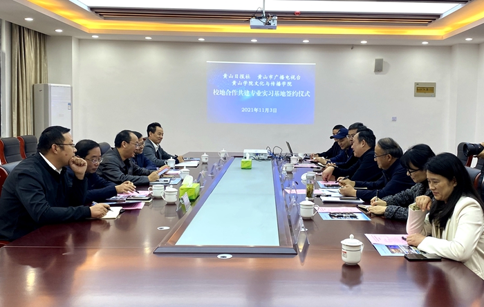 黄建敏表示,近年来,太阳成集团tyc9728为黄山日报社、黄山市广播电视台等本地媒体的发展提供了人才支持,未来将进一步落实好双方的合作协议内容,在新闻发稿、组织宣传、媒体栏目建设、课题的校企联合申报等方面展开深度有效的合作。