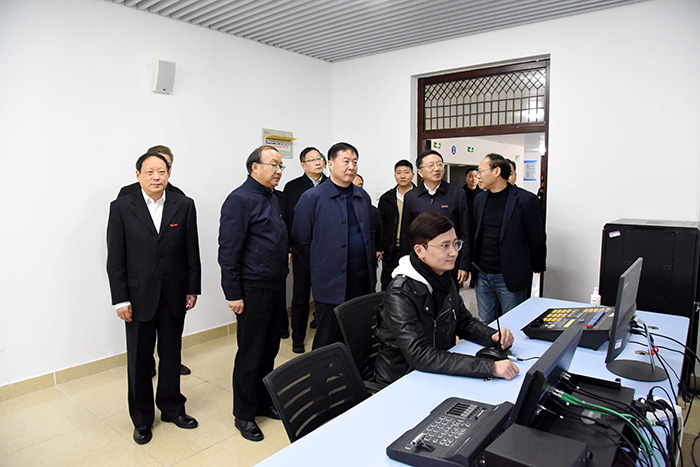 姚玉舟一行参观考察了我院实验实训中心,先后来到电影博物馆、3D沉浸式演艺剧场、电视演播厅、民国影视基地、大学生广播电台等实验实训场所。姚玉舟对我院优良齐全的硬件设施条件予以充分肯定,对我院建设发展成就予以高度评价,希望我院充分利用优良教学资源,培养高素质文化传播人才。(撰稿:辛文;摄影:徐德平;审稿:汪家庚)