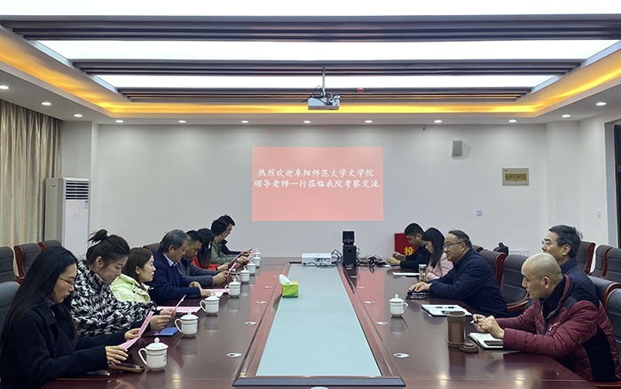 汪家庚介绍了文传学院发展沿革、专业建设、实验室建设、人才培养等方面情况,重点介绍了学院打造实践平台、开展实践教学、引领学生参加学科竞赛等方面情况,希望与阜阳师范大学文学院相关专业加强交流合作。