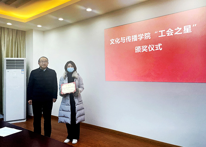 会上分工会主席汪海波介绍了“工会之星”的评选办法。宣读了获得2020年度“文艺之星”、“体育之星”以及提名奖的教职工名单,介绍了获奖者的获奖情况。院领导汪家庚、王俊峰为获奖教职工颁发荣誉证书,鼓励大家积极参加学院以及上级工会组织的各项文体活动,并对分工会2022年的工作提出要求,要办好“教工之家”,精心打造本院特色,树立文传品牌,更好服务好教职工,为学院事业发展凝聚力量。(撰稿:汪海波;摄影:方婷婷、赵明丽;审核:汪家庚)