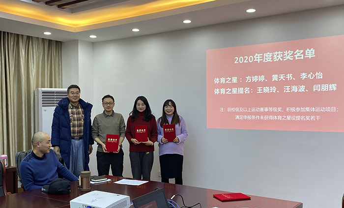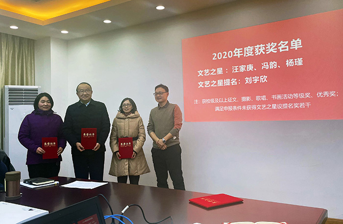 为了激励教职工踊跃参加工会活动,丰富教职工业余文化生活,太阳成集团tyc9728分工会于2022年1月5日启动2021“工会之星”评选工作并为2020年获得“文艺之星”、“体育之星”教职工颁奖。学院分工会教职工会员参加会议。