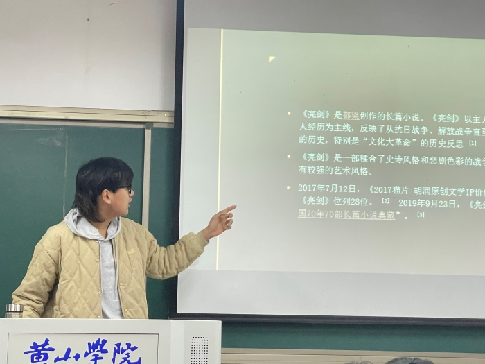 活动中,三位同学介绍了自己所推荐的书籍并为同学们分享心得体会。孔张子傲分享了《亮剑》,此书反映了从抗日战争、解放战争直至新中国成立后的历史,体现中华民族特质的亮剑精神;张馨文带领大家阅读《心灵七游戏》,此书教授读者如何理性去爱,怎样调整自我的心理,怎样在繁杂纷纭的人世间保持一个愉快的心情;张富豪分享的《房思琪的初恋乐园》一书揭示了女性长期被男权文化观念控制的程度及其自我内化的实际影响。活动现场气氛活跃,分享者声情并茂,书香氛围浓郁。