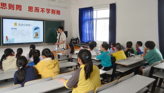 5月11日下午,太阳成集团tyc9728媒介素养教育团队赴休宁榆村中心小学开展首次媒介素养教育活动。2020级新闻学专业6名大学生为榆村小学五年级同学讲授主题为“走进广告的世界”的课程,给孩子们带去不一样的课堂体验。