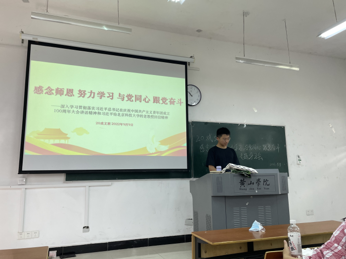 本次活动以班级为单位有序开展。8日上午,21播音班于文渊楼开展“迎接党的二十大,培根铸魂育新人”主题演讲活动来表达对老师的祝福;当天下午,21新闻班于文渊楼教室带领大家举办教师节以及优秀教师的知识宣讲班会,会上由团支书安琛琛向大家介绍了教师节的由来,再由小组代表上台分享国内外教师的优秀事迹,同学们分享了数十个优秀教师的感人事迹,发人深省,也令人动容;20戏文班于9日上午在文渊楼教室开展“感念师恩、努力学习、与党同心、跟党奋斗”专题学习会,该班通过学习习近平总书记在庆祝中国共产主义青年团成立100周年大会讲话精神和习近平给北京科技大学的老教授回信精神,感念师恩,与党同心,跟党奋斗。