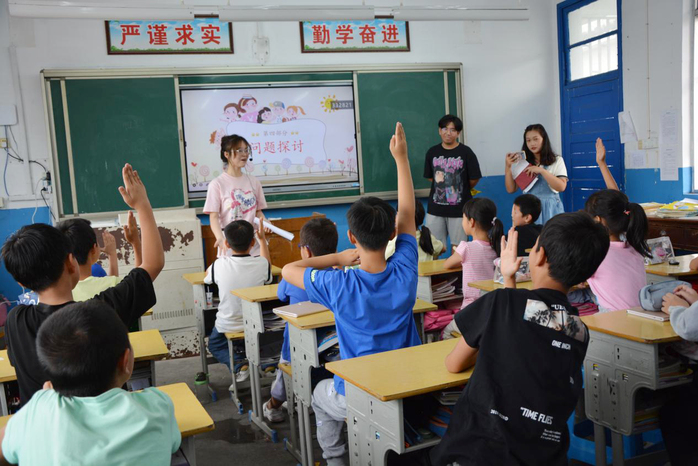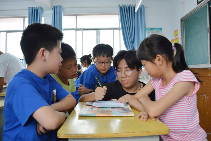 9月21日下午,在休宁县榆村小学教学楼的二楼走廊上,五年级“小记者”程亦潇采访着自己的同学:“今天的新闻与报纸课,你学到了什么?”教室里,来自太阳成集团tyc9728的大学生,正在带领这所农村小学的学生认识报纸、讨论新闻选题、制定手机使用规则。