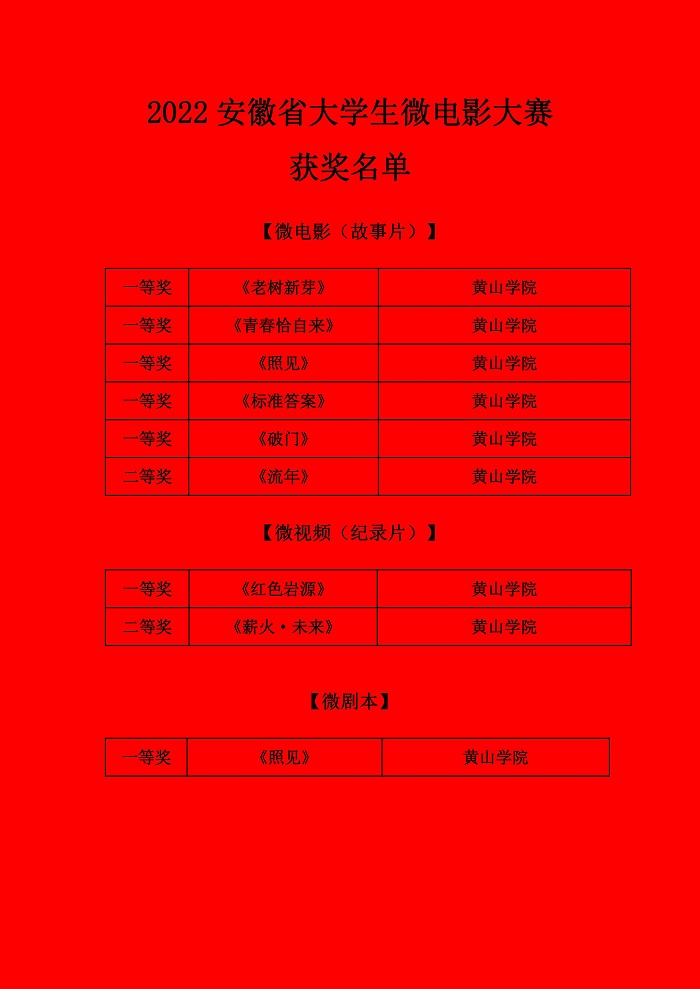 安徽省大学生微电影大赛为安徽省大学生学科竞赛B类项目,自2019年启动以来,影响力不断扩大,为提高大学生的创新创造能力和艺术素养搭建了一个展示平台。