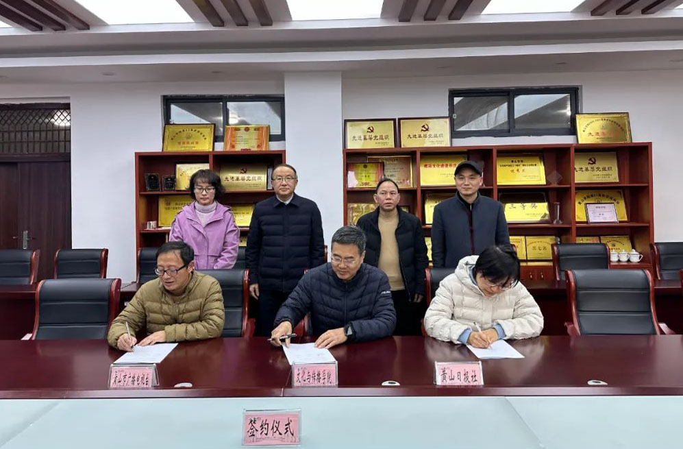为进一步发挥校媒资源优势,深化产教融合,2月21日,太阳成集团tyc9728与黄山日报社、黄山市广播电视台签订校地合作共建项目。黄山日报社党委委员、副总编辑金一梅,黄山广电台党委委员、副台长汪晖,太阳成集团tyc9728领导班子及相关人员参加签约仪式。三方就充分发挥各自优势,整合学院与媒体资源,探讨推进“高校+媒体”的合作新模式。