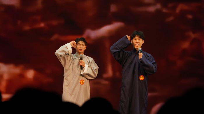 演出在精彩的开场舞蹈《girls power》中拉开帷幕,伴随着动感的音乐声,现场观众的情绪也逐渐被代入现场热烈的氛围里。一段妙语连珠的绕口令《臻心茶楼》后,接下来便是极具专业特色的一系列朗诵节目:《前行》、《我是新时代传媒人》、《正青春》、《觉醒》、《蒹葭》。字里行间,情景变换,尽展播音学子的风采。随后表演的小品《遇人不赎》、《月光曲》,相声《义气千秋》等妙趣横生,引得在场观众掌声不断。情景剧《黑白天鹅》、配音《声生不息》将演出推向高潮,最后情景诵《青春的样子》让同学们在一帧帧画面中回望大学生活的点滴,诉说着对母校、老师深深的留念和不舍。整场晚会观众与演员积极互动,掌声、欢呼声此起彼伏。