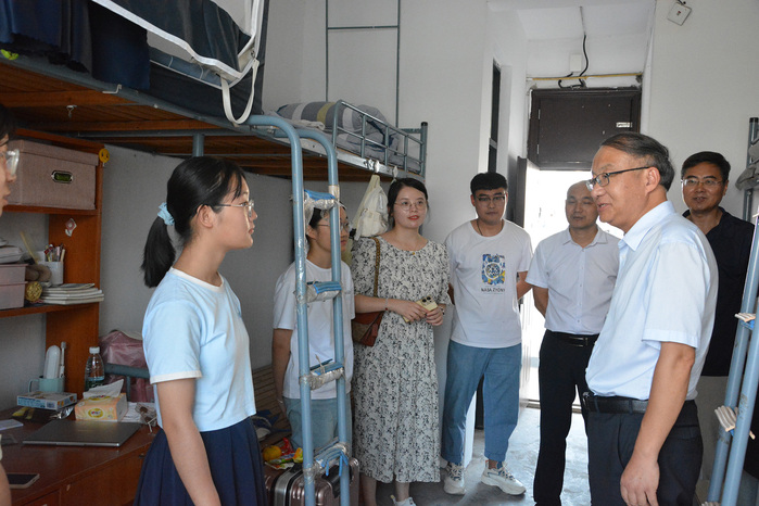 下午4:00,迎新工作趋缓,大多数新生已入住宿舍。文传学院党委书记汪家庚、院长王俊峰、副院长吕正兵,在新生辅导员陪同下前往宿舍看望远道而来的各位新生及家长,感谢家长把孩子送到学校,希望新生尽快适应大学学习和生活,开启人生新的旅程。