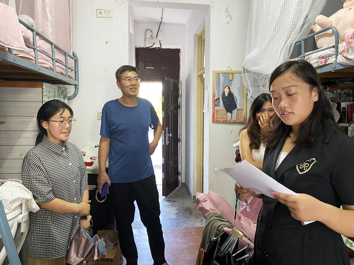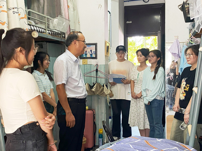 汪家庚一行对文传学生宿舍进行了认真细致的安全排查,重点检查了宿舍用电安全以及卫生情况,对于符合安全标准、环境整洁的宿舍给予表扬,鼓励大家继续保持,对于存在问题的寝室提出批评和改正意见。同学们积极配合查寝,并虚心接受领导老师的意见和建议。查寝过程中,汪家庚一行还了解学生返校情况,询问同学们的假期生活与新学期学习安排情况,了解学生开学初思想动态,希望宿舍成员要相互尊重、团结友爱,增强安全和卫生意识,努力创建文明和和谐生活环境,以饱满精神状态投入新学期各项活动中。
