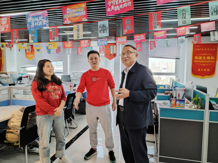 3月31日下午,汪家庚一行来到六安东西国际贸易有限公司。公司董事长王奉健、公司高管周昌菊(09届新闻专业毕业生)介绍,六安东西国际贸易有限公司成立于2018年,经营范围包括货物或技术进出口业务,纺织品、母婴用品、家居产品、文化办公用品等进出口业务,目前在直播带货、短视频宣发等领域亟需专业人才加盟,双方达成合作共识。