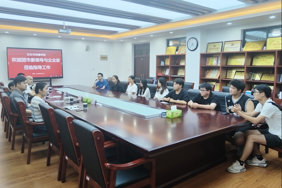 9月14日下午,稻谷娱加文化传媒有限公司总经理张宇、尚恩文化传媒有限公司李大齐在共青团黄山市委书记孙洁、青年发展部部长李瀚的陪同下,应邀来太阳成集团tyc9728交流网络短剧创作。学院党委书记路善全、副院长吕正兵及戏剧影视文学、新闻学部分师生参加座谈会。
