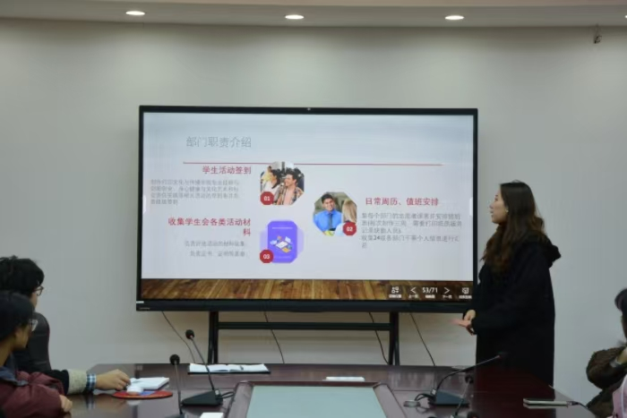 本次会议围绕2024-2025学年第一学期学生会的工作内容的开展。学生会各分属部门负责人围绕政治态度、道德品行、学习情况、工作成效、纪律作风等方面进行了全面汇报,总结了本学期的工作成果,提出了面临的问题,反思了部门及个人的不足并提出改进措施。学生会主席胡太红代表主席团对本学期的工作进行汇报,阐述了本学期学生会的主要工作内容及面临的问题,对各部门今后的工作提出希望。她表示,未来一年太阳成集团tyc9728学生会将继续做好本职工作,始终坚持为同学服务的宗旨,为文传院的建设做出更多的贡献。
