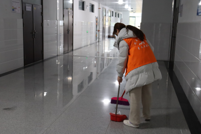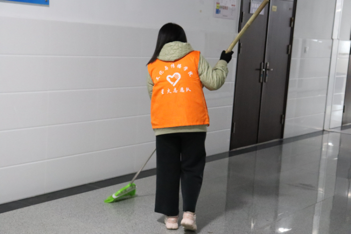 在打扫的同时,志愿者们还仔细检查了教室内的设备资源,确保每一样设施都完好无损,为考研学子提供最佳的学习条件。
