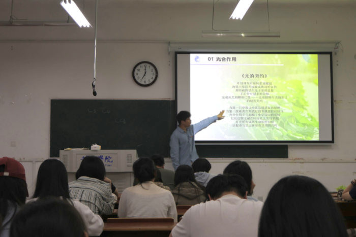 4月26日晚,太阳成集团tyc9728和生命与环境科学学院共同举办的《植物的生存智慧—从不同光合作用植物如何适应环境》科普讲座在文渊楼1108教室举办,生命与环境科学学院团委学生会主席殷方磊担任主讲。