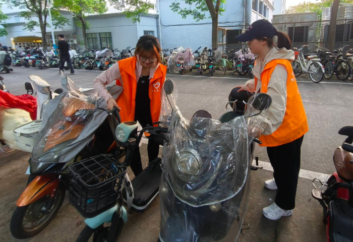 活动伊始,负责人对志愿者进行分组并明确任务分工,详细讲解各区域车辆摆放要求及注意事项。随后,各小组前往宿舍区、教学楼、食堂周边等车辆密集区域展开行动。志愿者们将停放杂乱的自行车、电动车逐一归位,确保车辆整齐停放在划定区域内;对倒伏的车辆及时扶正,清理出10余辆损坏车辆并统一转运至维修点。过程中,志愿者们还对随意停放车辆的学生进行文明劝导,耐心说明规范停车的重要性。
