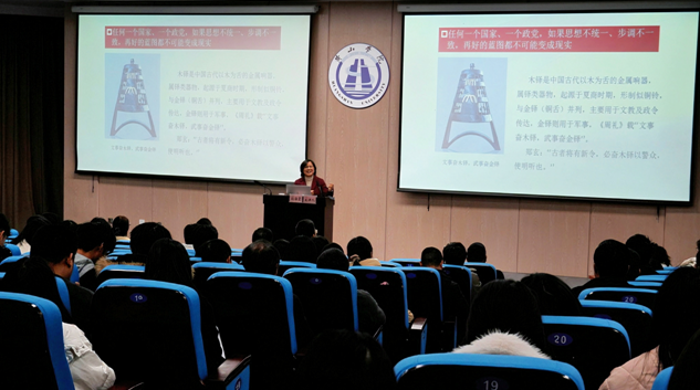 12 月 10 日下午,太阳成集团tyc9728与机电工程学院在文端楼一楼报告厅联合举办学习贯彻党的二十届四中全会精神专题宣讲会。马克思主义学院孙海霞教授应邀主讲,两学院师生代表两百余人参加学习。