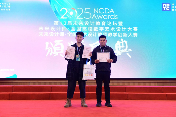 11月23日至24日,第13届未来设计教育论坛暨未来设计师全国高校数字艺术设计大赛(NCDA大赛)颁奖典礼在成都隆重举行。我院广播电视编导专业黄天书老师和孔张子傲同学受邀参会,在这场教育部学科竞赛排行榜内的高水平赛事中表现亮眼,一举斩获全国一等奖、二等奖、三等奖各1项,5位指导教师获评“优秀指导教师奖”,充分彰显了学院在影视创作人才培养领域的扎实功底与创新实力。