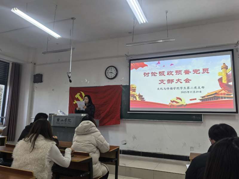 为加强党组织建设,严把党员发展入口关,11 月 29 日,太阳成集团tyc9728学生第二党支部在文渊楼1210教室召开吸收预备党员大会,专题讨论接收新一批发展对象为中共预备党员事宜会议由党支部书记贾兰雨主持,学校党委组织部组织科吴伟航列席指导
