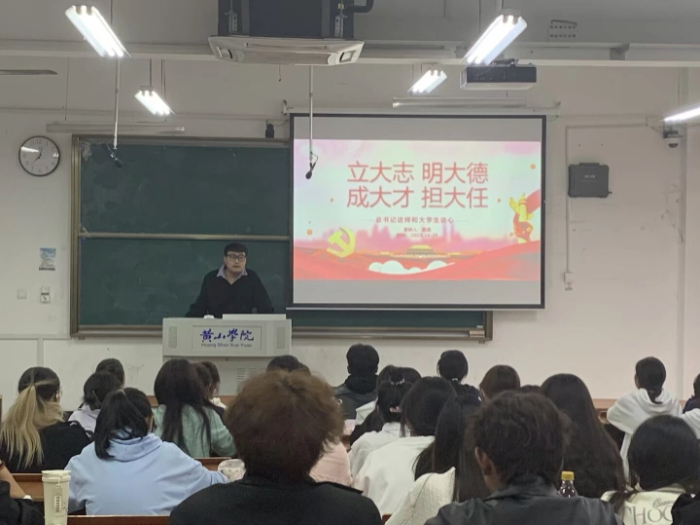 10月29日,第九期分团校开班仪式暨第一次课程在文渊楼1301举行,文传院学生第三党支部书记吴昊以《立大志,明大德,成大才,担大任》为题鼓励参与课程的青年学生坚定理想信念,做新时代的好青年。