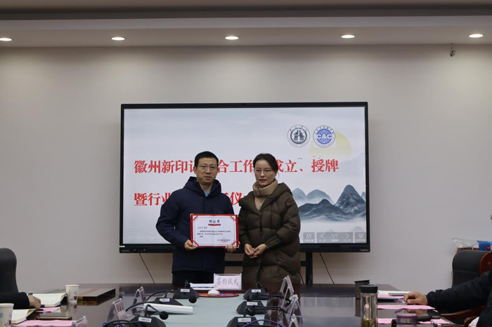 仪式上,吕正兵与李安代表校企双方签署合作协议,双方本着相互协作、各施所长、互补所需、共同发展的意愿,对外挂牌成立“徽州新印记联合工作室”。王泽梁为工作室授牌,郑静分别为戴本祠、唐友明颁发行业导师聘书,为工作室建设与人才培养注入行业力量。