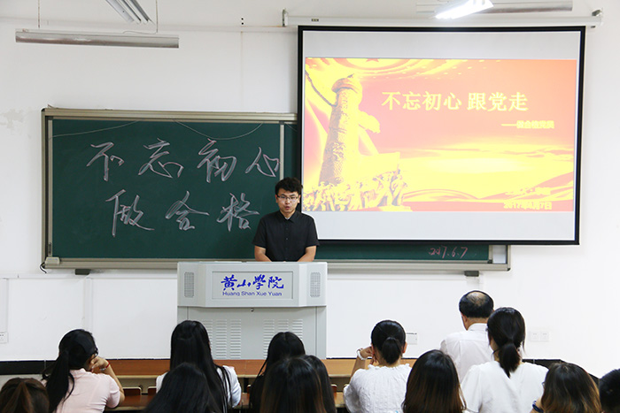 党总支书记汪家庚在会上讲话,他肯定了李超在大学四年里作为一名积极要求进步的大学生在政治思想、专业发展、文学创作等方面的取得的成绩,希望入党积极分子和学生党员们向李超同学学习,做有理想抱负和有担当精神的大学生。学生党支部宣传委员余瑶主持报告会。