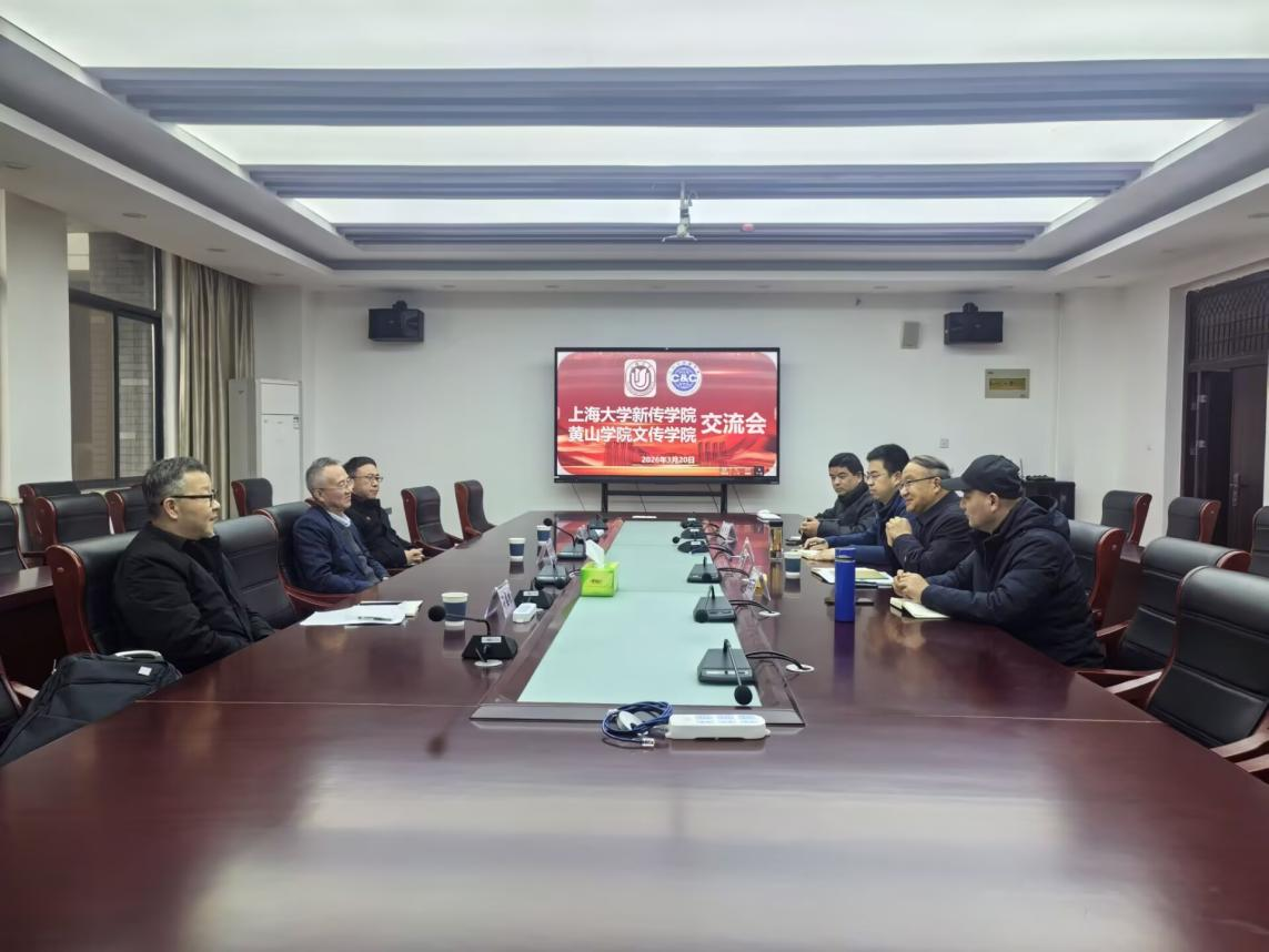 王泽梁对王晴川一行的到来表示欢迎,他表示,双方自建立合作关系以来,依托黄山国际传播研究院,已取得了扎实的成效,并对2026年双方的进一步合作充满信心。吕正兵重点就博士后工作站建设与上海大学新闻传播学院进行了商谈。刘罗玉就教师工作坊、教师沙龙、教学成果奖申报、学生学科竞赛等进行了交流。